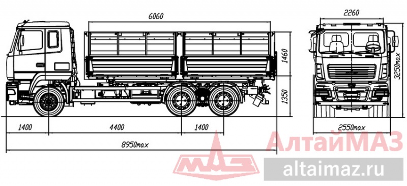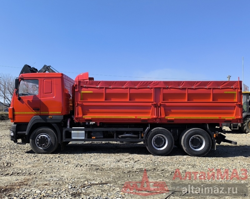 Самосвальный зерновозный автопоезд в составе сельскохозяйственного самосвала МАЗ-65012J-8535-000 совместно с прицепом-зерновозом МАЗ-856103-022-000 разработан соответствующий весовым параметрам, позволяющим осуществлять передвижение по дорогам общего пользования без превышения нагрузок по осям.