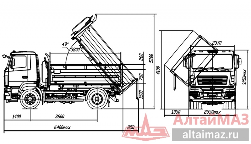 Автомобиль - самосвал колесной формулой 4х2 с трехсторонней разгрузкой, предназначен для перевозки различных грузов в том числе сельскохозяйственных сыпучих.