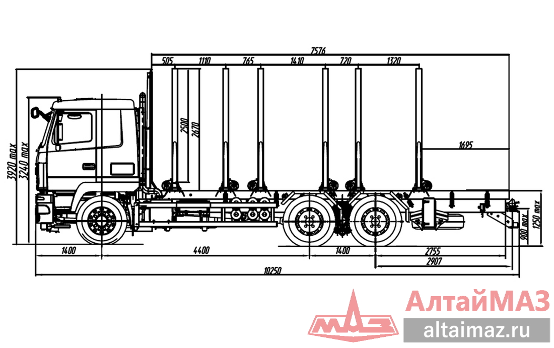 10 250 х 2 550 х 3 920 |